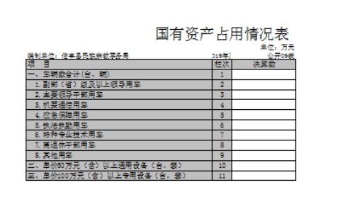 截止2019年12月31日,本部门共有车辆0辆,其中,副部(省)级及以上领导用车0辆、主要领导干部用车0辆、机要通信用车 0 辆、应急保障用车0辆、执法执勤用车 0 辆、特种专业技术用车0辆、其他用车 0辆,;单位价值50万元以上通用设备0台(套);单位价值100万元以上专用设备 0台(套)。