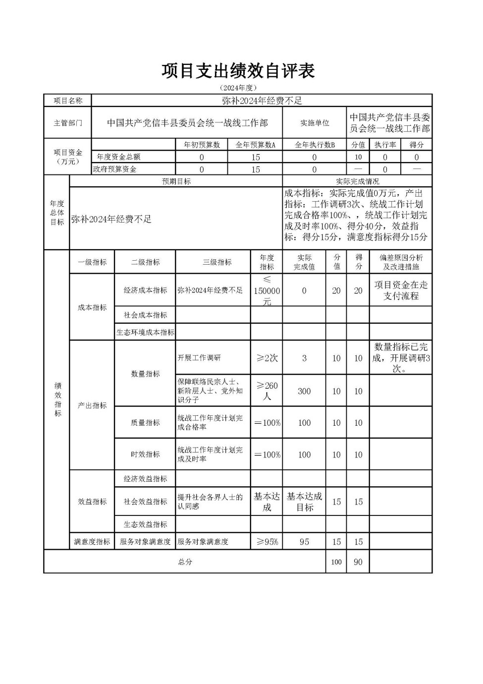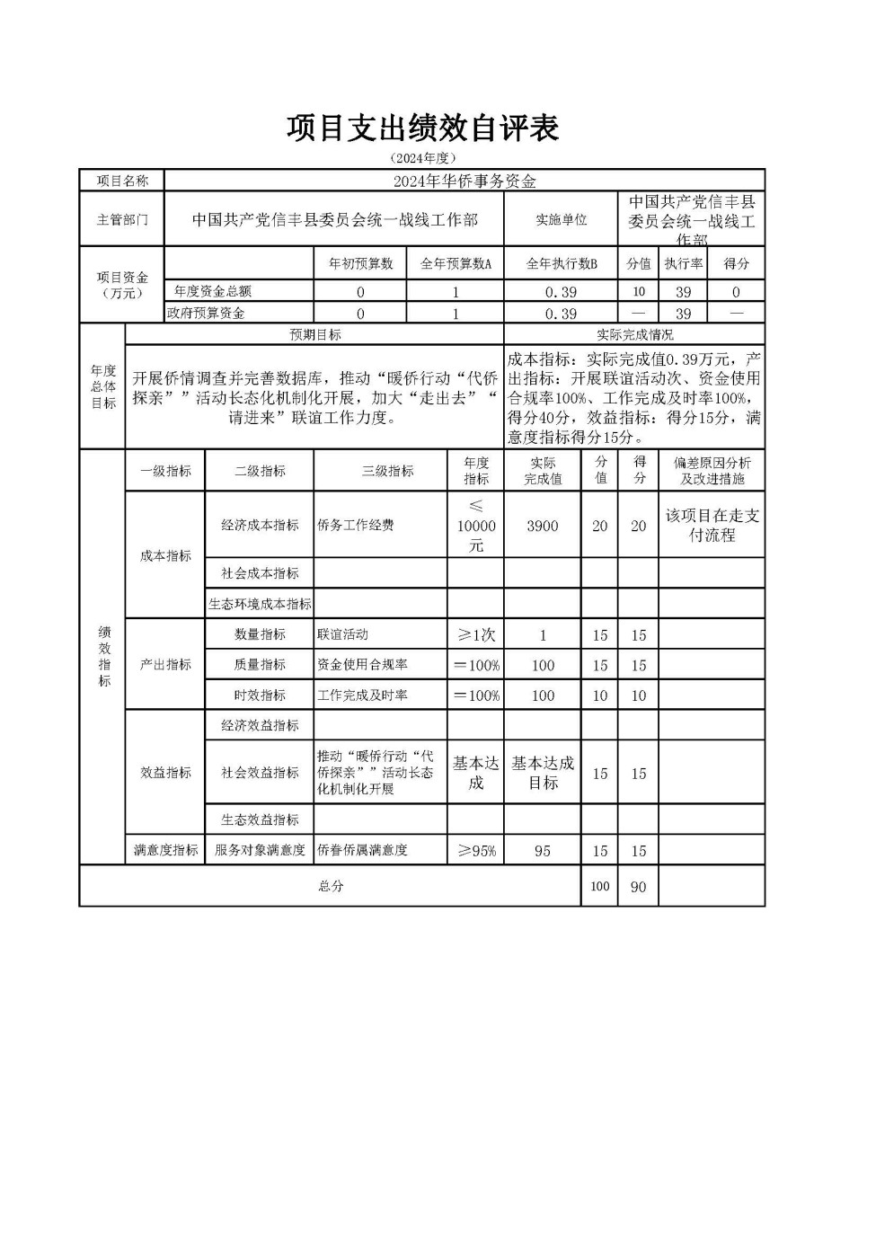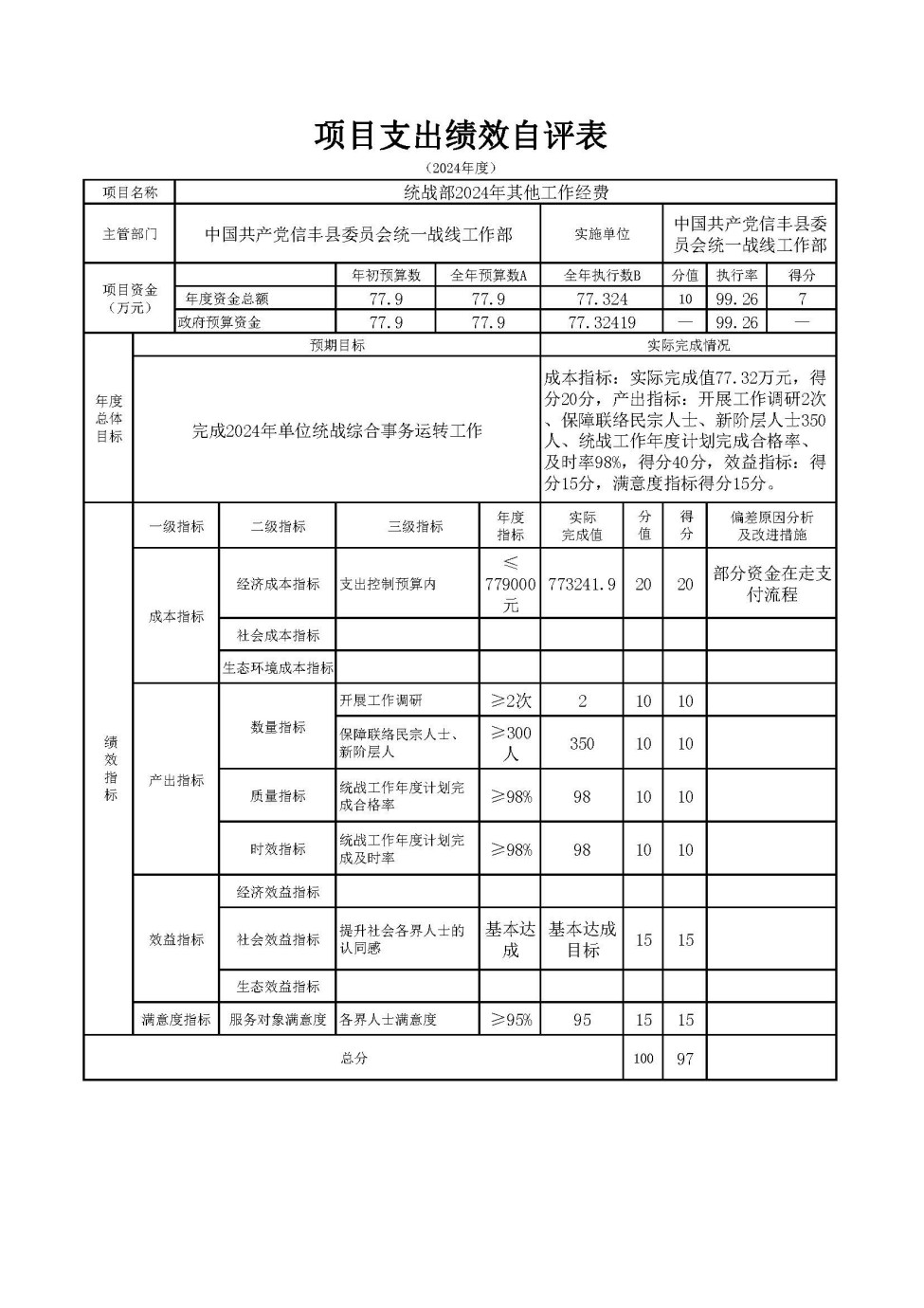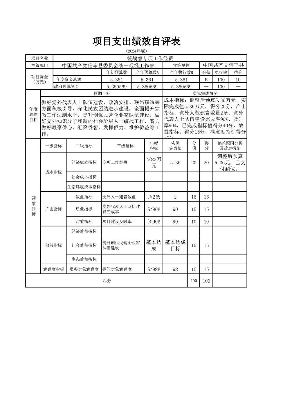 中国共产党信丰县委员会统一战线工作部2024年度部门决算