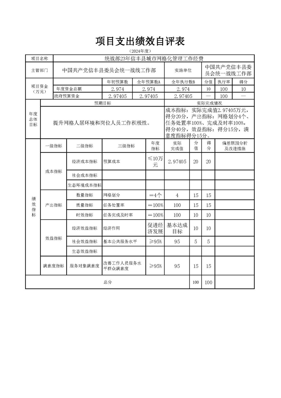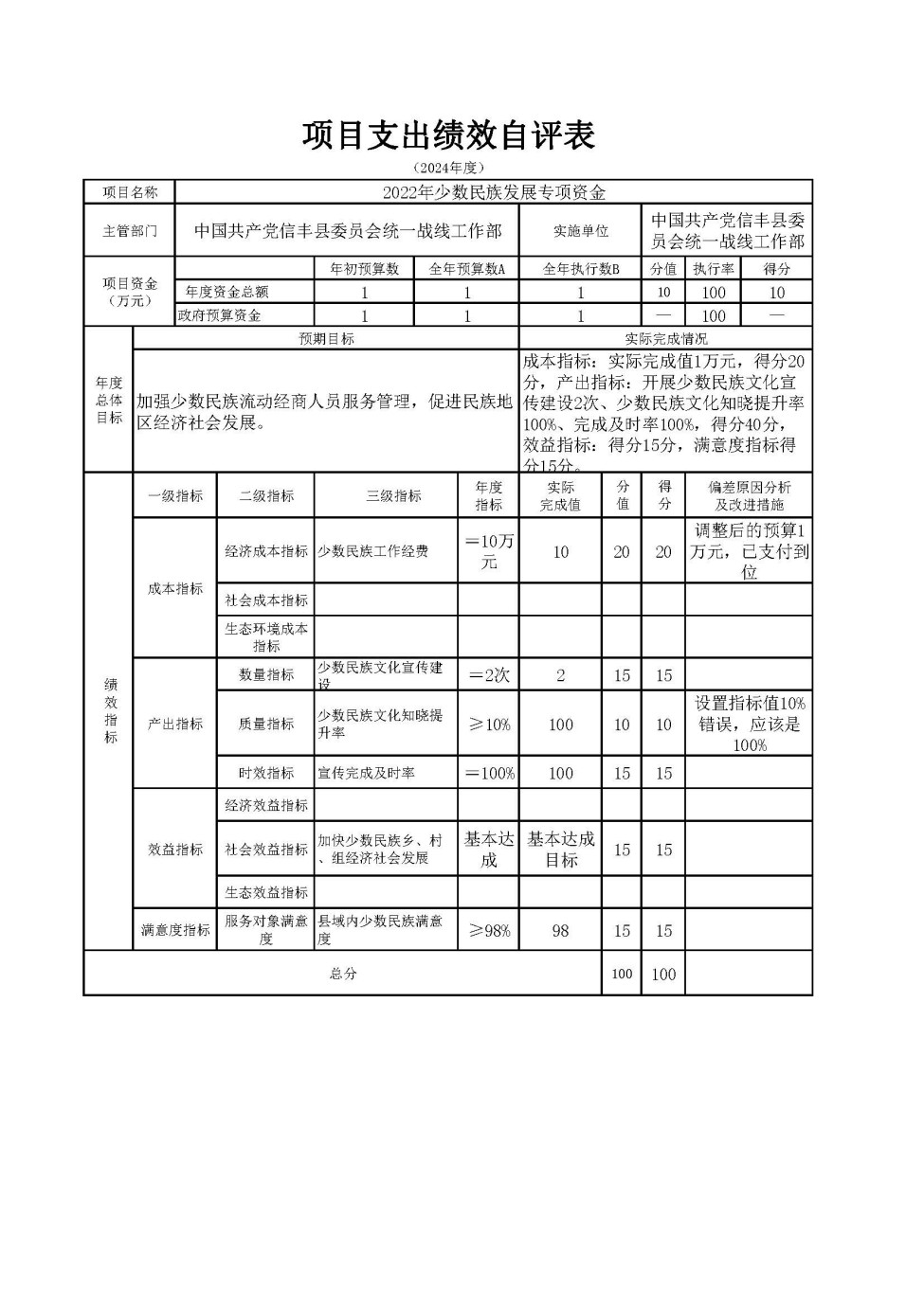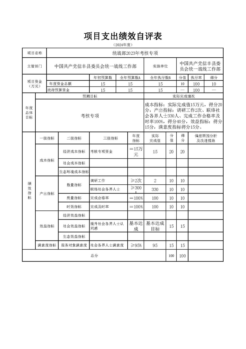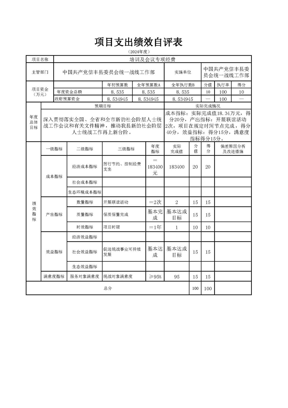 中国共产党信丰县委员会统一战线工作部2024年度部门决算
