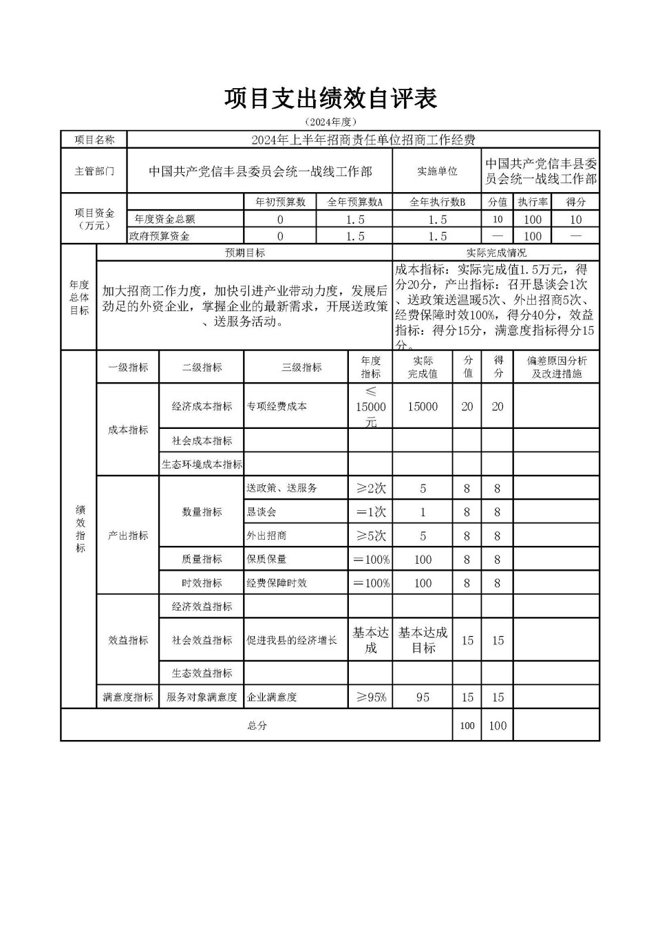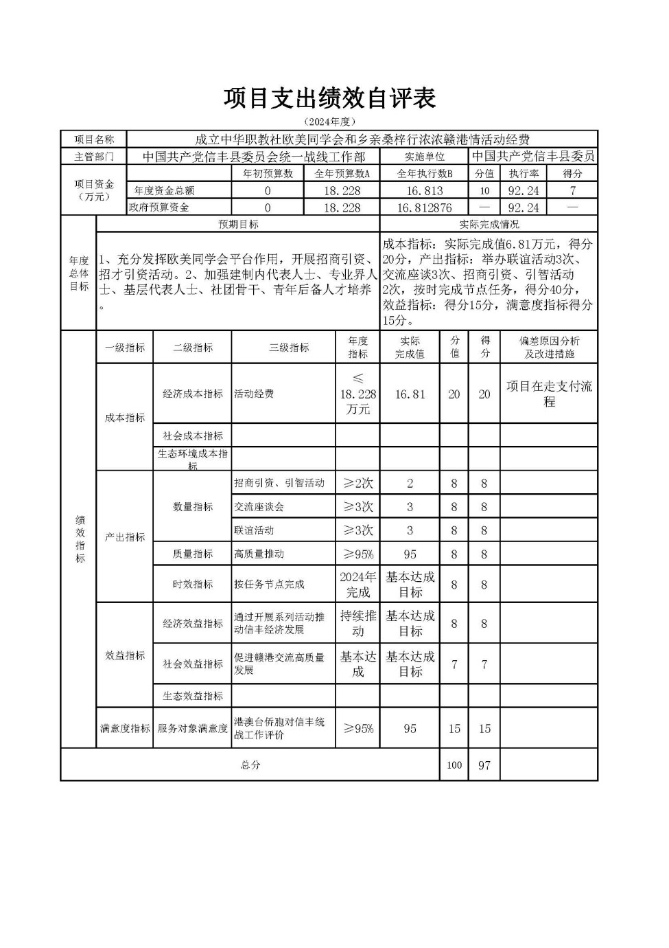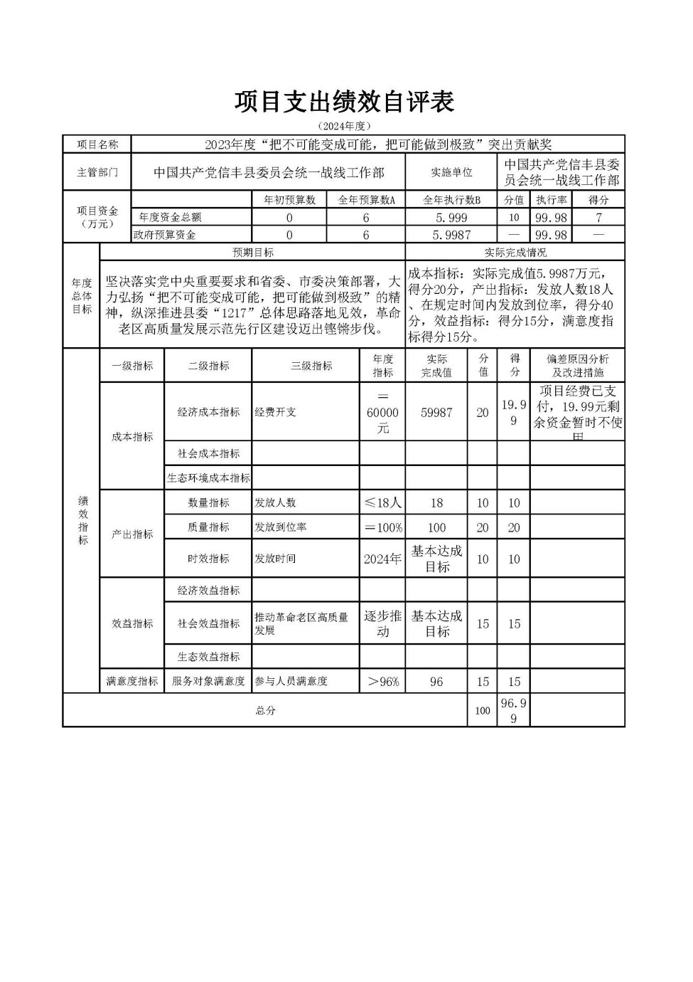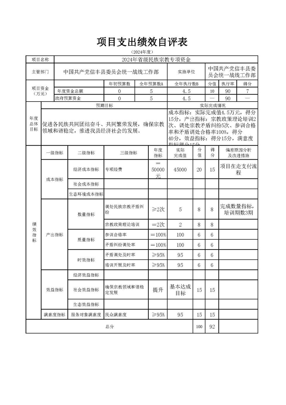 中国共产党信丰县委员会统一战线工作部2024年度部门决算