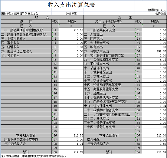 本部门2019年度收入总计217.59万元,其中年初结转和结余2.59万元,较2018年增加28.17万元,增长15%;本年收入合计217.59万元,较2018年增加28.17万元,增长14%,主要原因是:拨付院士建设工作经费未列入年初预算(依据信府办抄字【2019年】219号文件)。