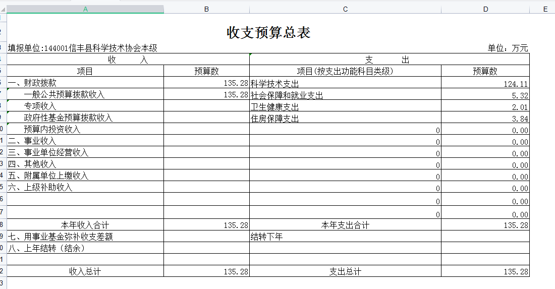 2021年信丰县科协收入预算总额为135.28万元,比上年增加5.58万元。其中:财政拨款收入135.28万。