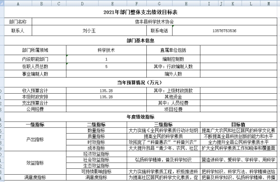 信丰县科协2021年部门预算