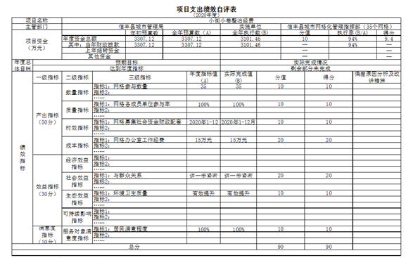 项目绩效自评总体综述:根据年初设定的绩效目标,小街小巷整治经费项目绩效自评得分为90分。项目全年预算数为3307.12万元,执行数为3101.46万元,完成预算的94%。项目绩效目标完成情况:(一)网格领导推动力度有新的加强。县委钟书记、袁县长重大活动亲自参与、亲自调度,经常深入各网格调研,与社区干部开展座谈,聆听诉求,听取基层意见建议。“四套”班子领导、各网格长及责任单位领导亲临网格一线指导、指导一线,亲自调研调度、召开推进会,细化分解任务,完善工作措施。35个网格的网格长调度工作1600余次,32个网格的社会募捐资金超过50万元,建成了塘头湾美食城等一批具有信丰特色的亮点项目。