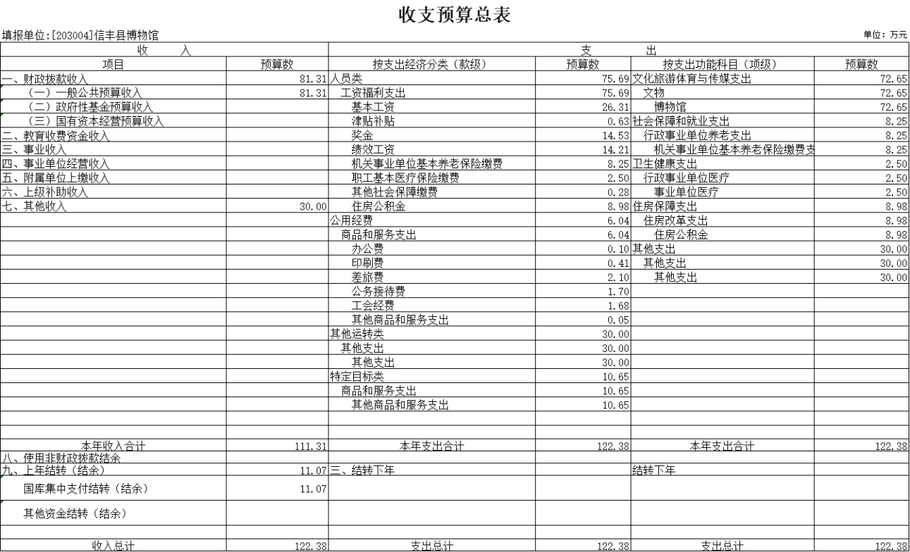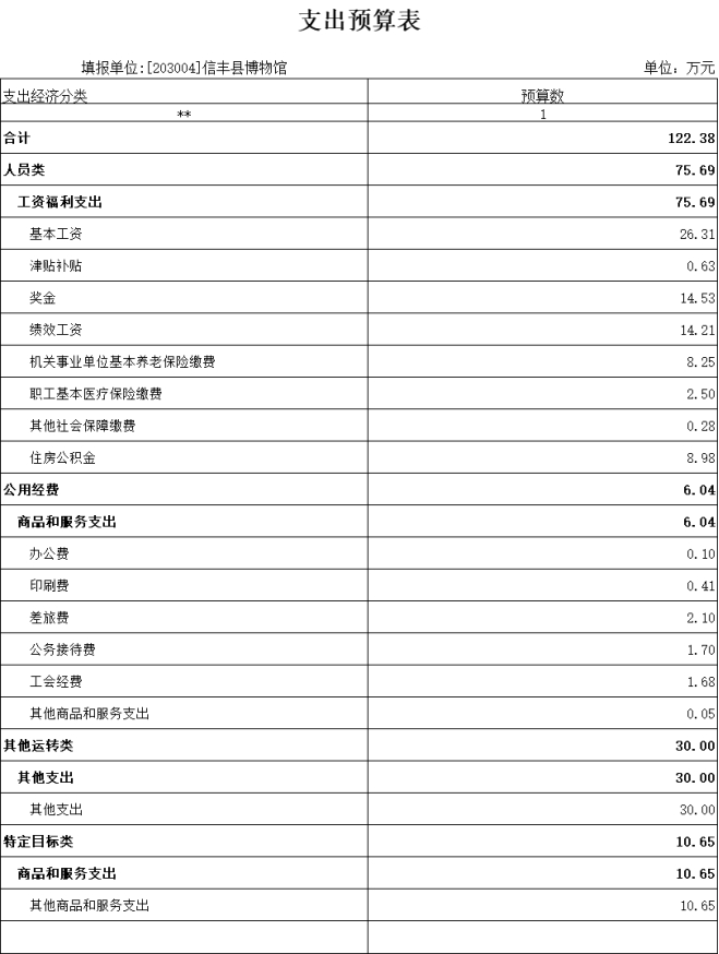 2023年信丰县博物馆支出预算总额为122.38万元,较上年预算安排减少10.55万元。其中: