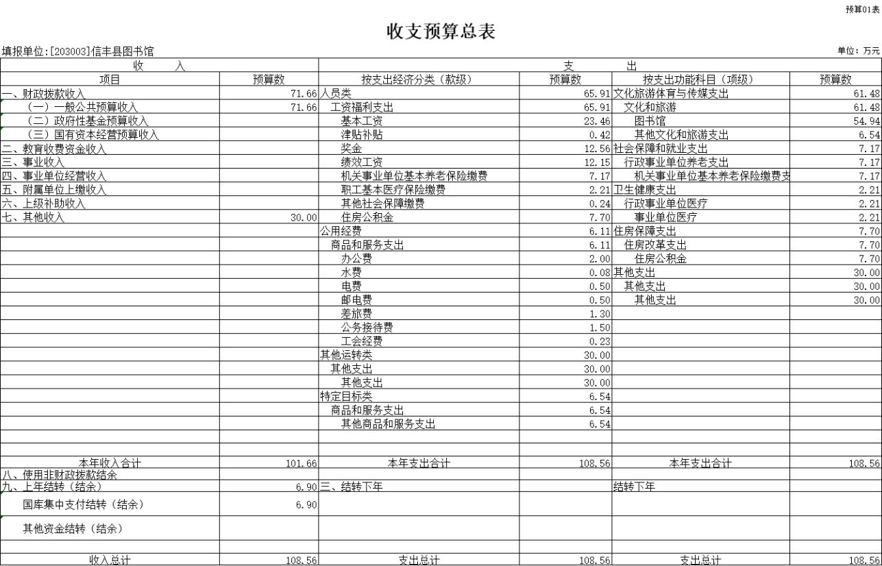 2023年信丰县图书馆收入预算总额为108.56万元,较上年减少43.85万元。其中:财政拨款收入71.66万元,占收入预算总额的66%,较上年预算安排增加1.03万元,包括一般公共预算收入71.66万元,政府性基金预算收入0万元,国有资本经营预算收入0万元;教育收费资金收入0万元,占收入预算总额的0%,较上年预算安排增加(减少)0万元;事业收入0万元,占收入预算总额的0%,较上年预算安排增加(减少)0万元;其他收入30万元,占收入预算总额的27.6%,较上年预算安排减少50万元;上年结转6.9万元,较上年增加5.12万元。