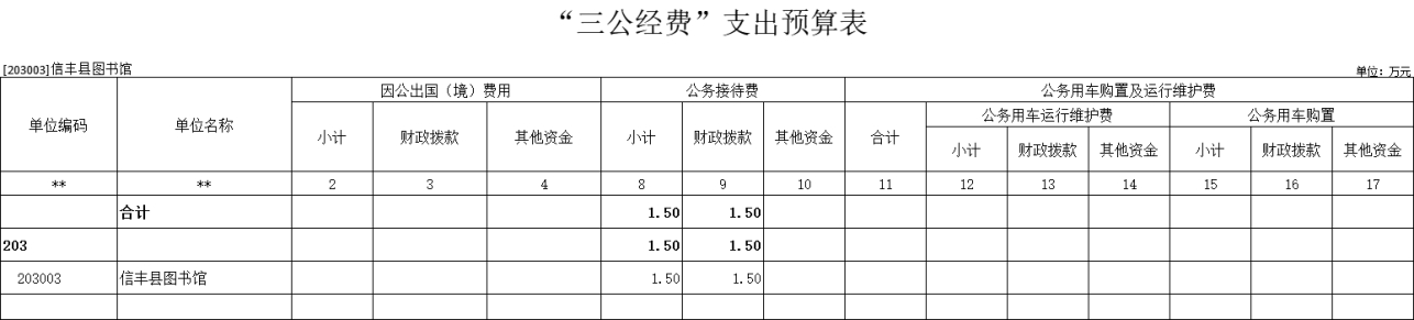 2023年信丰县图书馆“三公”经费一般公共预算安排1.5万元。其中: