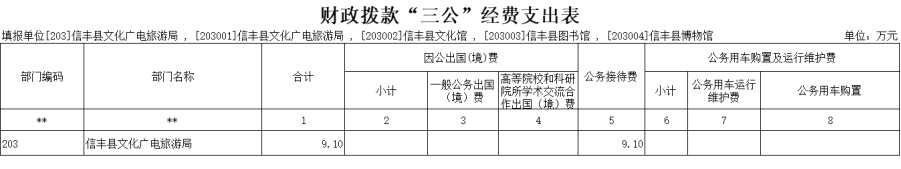 2025年文广旅局部门“三公”经费财政拨款安排 9.1 万元,其中: