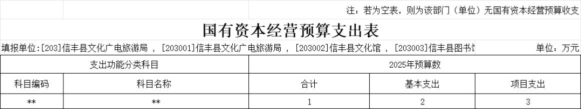 2025年文广旅局部门国有资本经营收入预算为 0 万元,支出预算为 0 万元,其中:基本支出 0 万元,项目支出0 万元。