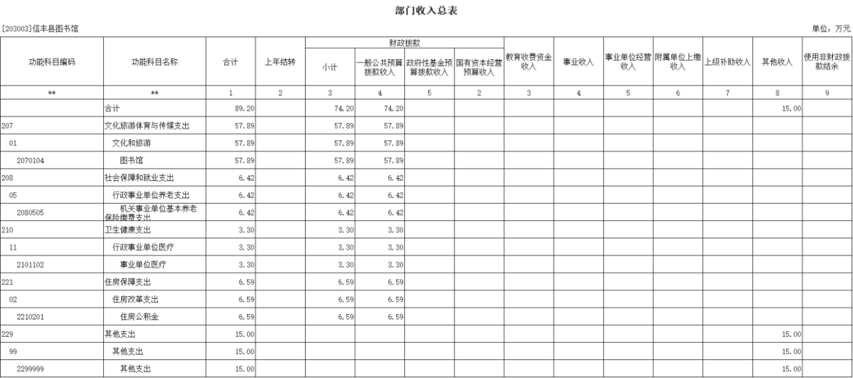 2025年图书馆收入预算总额为 89.2 万元,较上年预算安排减少 38.42 万元,其中:财政拨款收入 74.2 万元,较上年预算安排减少 33.42 万元;教育收费资金收入 0 万元,较上年预算安排增加(减少) 0 万元;事业收入 0 万元,较上年预算安排增加(减少) 0 万元;事业单位经营收入 0 万元,较上年预算安排增加(减少) 0 万元;附属单位上缴收入 0 万元,较上年预算安排增加(减少) 0 万元;上级补助收入 0 万元,较上年预算安排增加(减少)0 万元;其他收入 15 万元,较上年预算安排减少 5 万元;使用非财政拨款结余 0 万元,较上年预算安排增加(减少) 0 万元;上年结转(结余) 0 万元,较上年预算安排增加(减少) 0 万元。