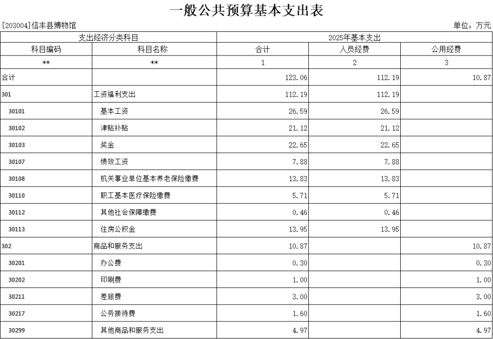 第二部分 信丰县博物馆2025年部门预算表