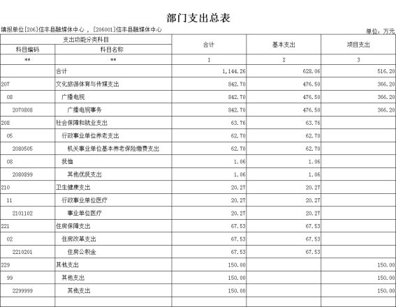 2023年信丰县融媒体中心支出预算总额为1144.26万元,较上年预算安排减少212.31万元。其中: