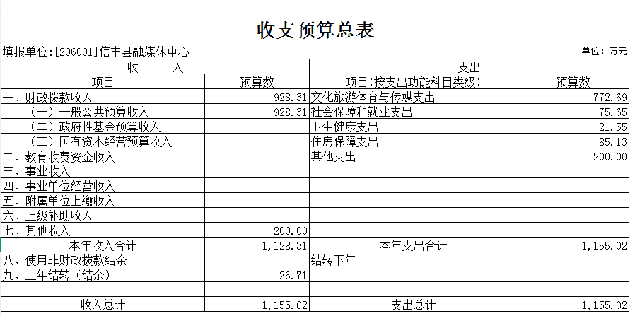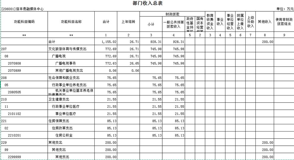 2025年信丰县融媒体中心部门支出预算总额为 1155.02 万元,较上年预算安排减少 254.77 万元;其中: