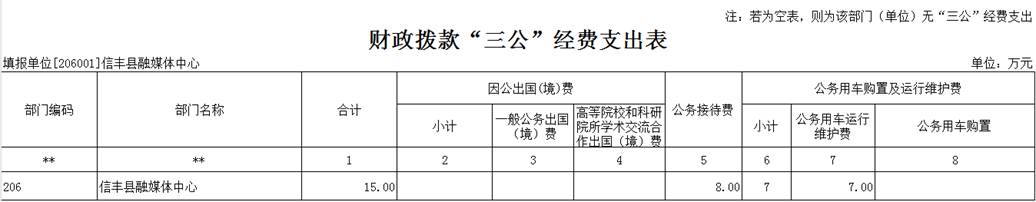 2025年融媒体中心“三公”经费财政拨款安排 15 万元,其中: