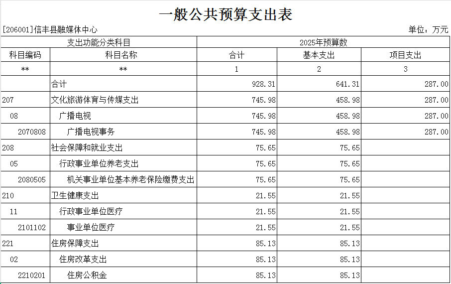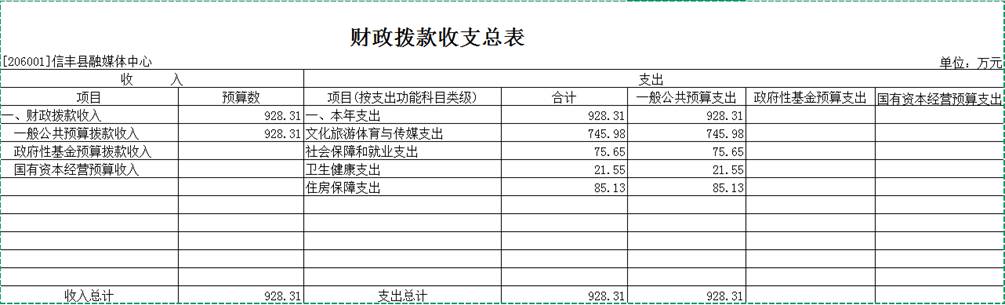 2025年信丰县融媒体中心部门财政拨款支出预算总额928.31 万元,较上年预算安排减少 31.48 万元;