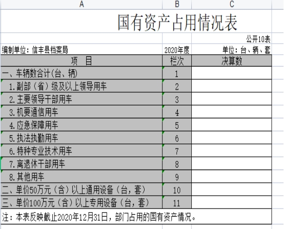 截止2020年12月31日,本部门共有车辆 0 辆,其中,副部(省)级及以上领导用车 0 辆、主要领导干部用车 0 辆、机要通信用车 0 辆、应急保障用车 0 辆、执法执勤用车 0 辆、特种专业技术用车 0 辆、其他用车 0 辆,无其他用车;单位价值50万元以上通用设备 0 台(套);单位价值100万元以上专用设备 0 台(套)。