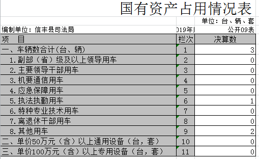 九、国有资产占用情况表
