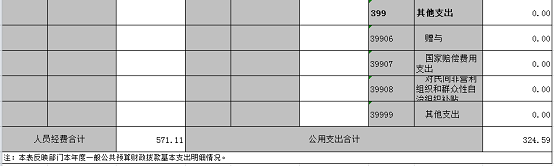 本年支出的具体构成为:基本支出 895.71 万元,占 100 %,其中人员经费571.11、公用经费324.59。