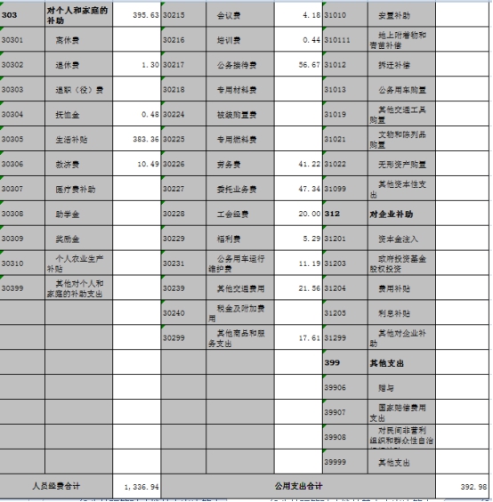 九、“三公”经费:指各部门因公出国(境)费、公务用车购置及运行费和公务接待费。其中,因公出国(境)费指单位公务出国(境)的住宿费、旅费、伙食补助费、杂费、培训费等支出;公务用车购置及运行费指单位公务用车购置费及租用费、燃料费、维修费、过路过桥费、保险费、安全奖励费用等支出;公务接待费指单位按规定开支的各类公务接待(含外宾接待)支出。