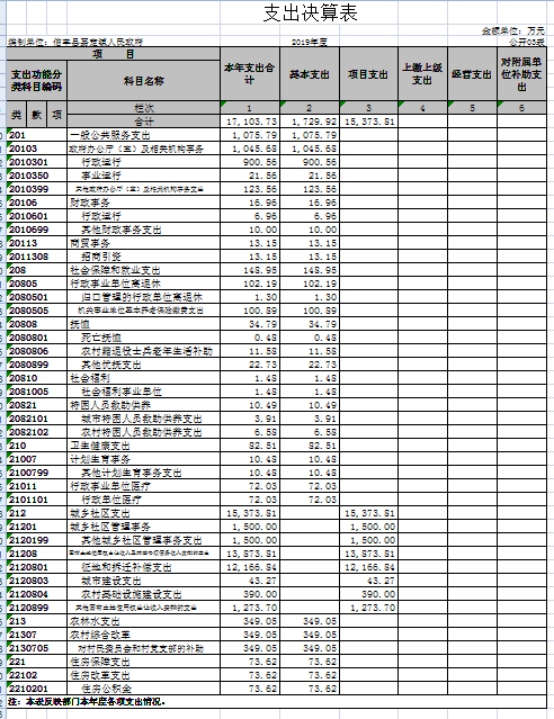 本部门2019年度支出总计17103.73万元,其中本年支出合计 17103.73 万元,较2018年增加5260.9万元,增长30.75 %,主要原因是:征地拆迁项目资金及重点工程项目大大增加,相关项目支出增加;年末结转和结余5376.8万元。