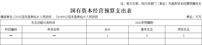 2022年信丰县崇仙乡人民政府国有资本经营预算支出预算0万元。具体为:社会保障和就业支出0万元,国有资本经营预算支出0万元。