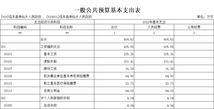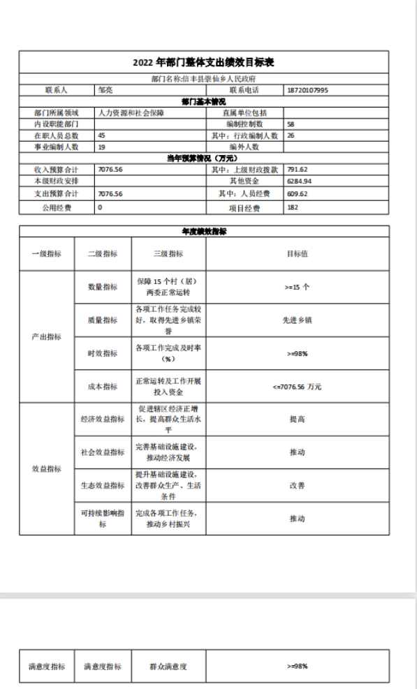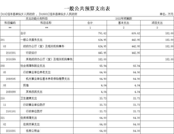 第三部分 信丰县崇仙乡人民政府2022年部门预算表