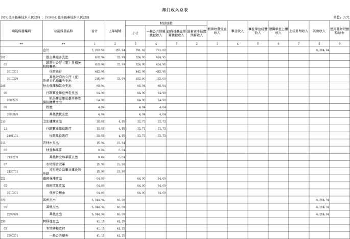 按支出功能科目划分:一般公共服务支出442.95万元,占支出预算总额的6%;社会保障和就业支出250.94万元,占支出预算总额的4%;卫生健康支出33.73万元,占支出预算总额的0.04%;农林水支出0万元,占支出预算总额的0%;住房保障支出64万元,占支出预算总额的1%;其他支出6284.94万元,占支出预算总额是88.81%。