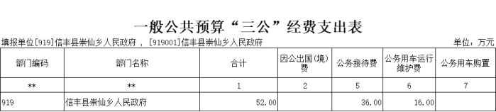 2022年信丰县崇仙乡人民政府“三公”经费一般公共预算安排52万元。其中: