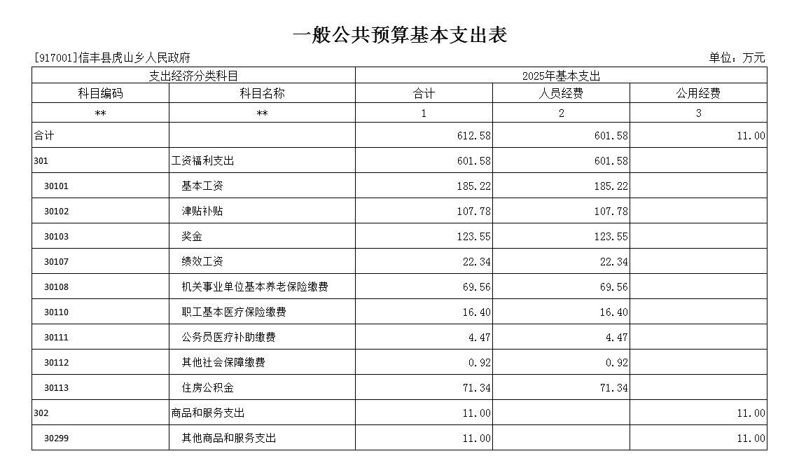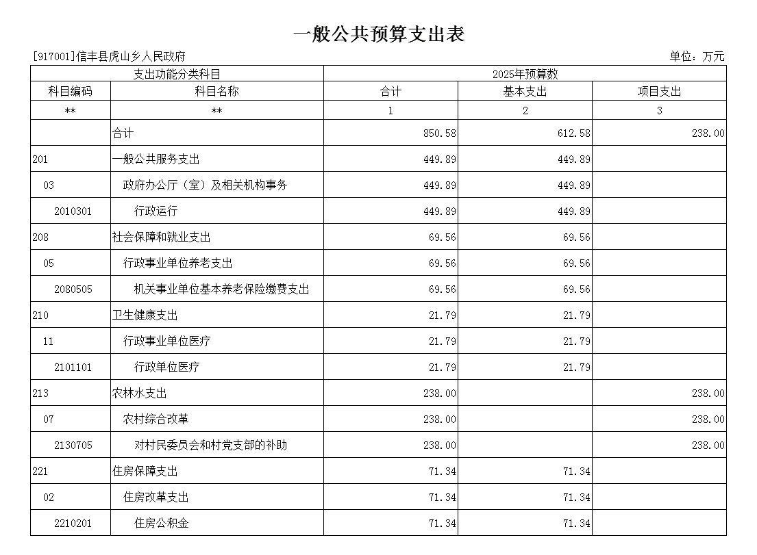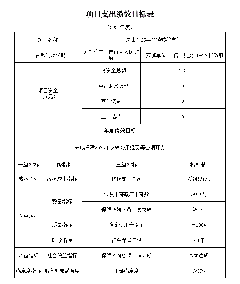 第二部分 信丰县虎山乡人民政府2025年部门预算表