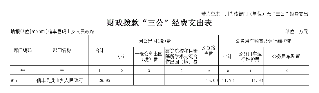 2025年虎山乡人民政府部门“三公”经费财政拨款安排26.93万元,其中:
