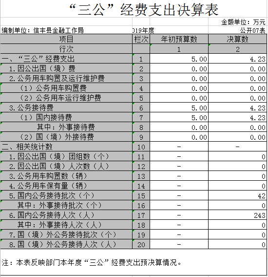九、“三公”经费:指各部门因公出国(境)费、公务用车购置及运行费和公务接待费。其中,因公出国(境)费指单位公务出国(境)的住宿费、旅费、伙食补助费、杂费、培训费等支出;公务用车购置及运行费指单位公务用车购置费及租用费、燃料费、维修费、过路过桥费、保险费、安全奖励费用等支出;公务接待费指单位按规定开支的各类公务接待(含外宾接待)支出。