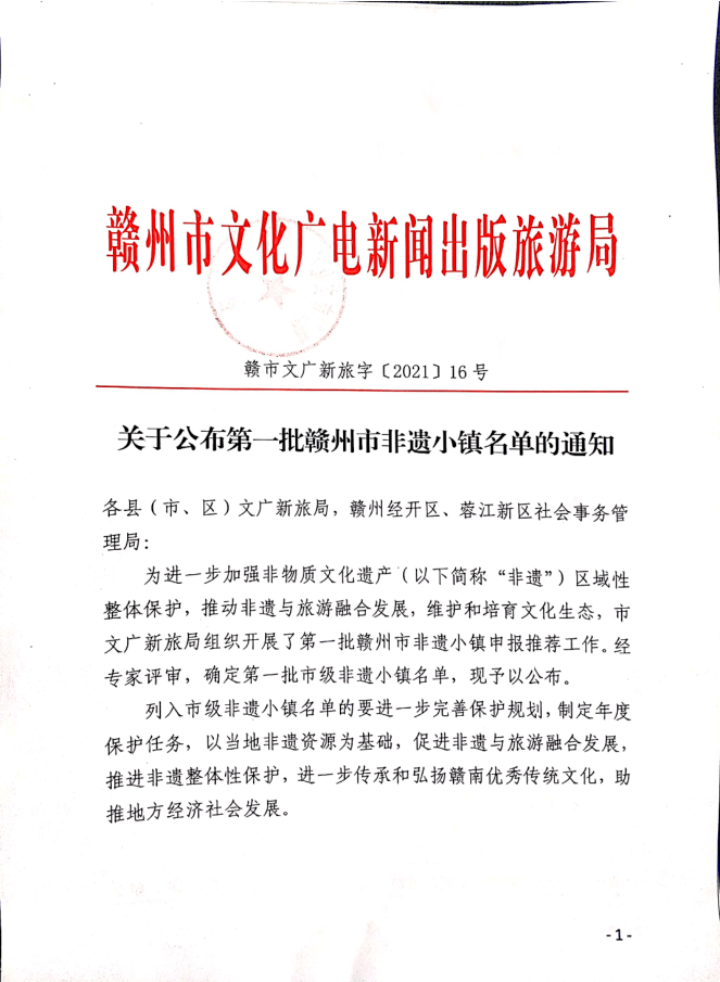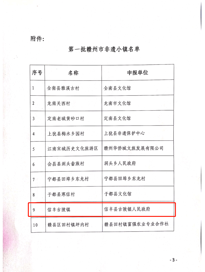 喜讯:信丰县古陂镇被列为第一批赣州市非遗小镇