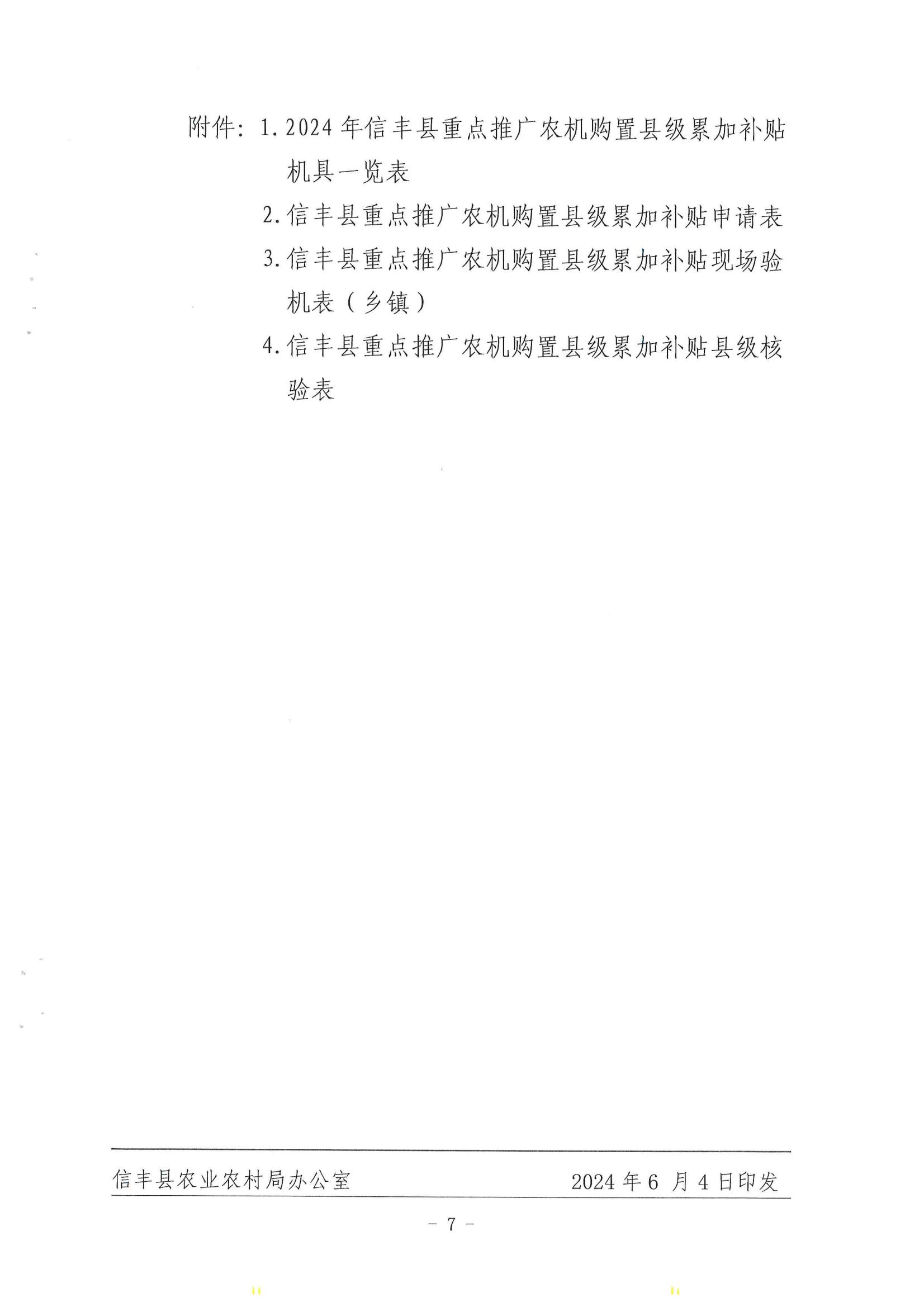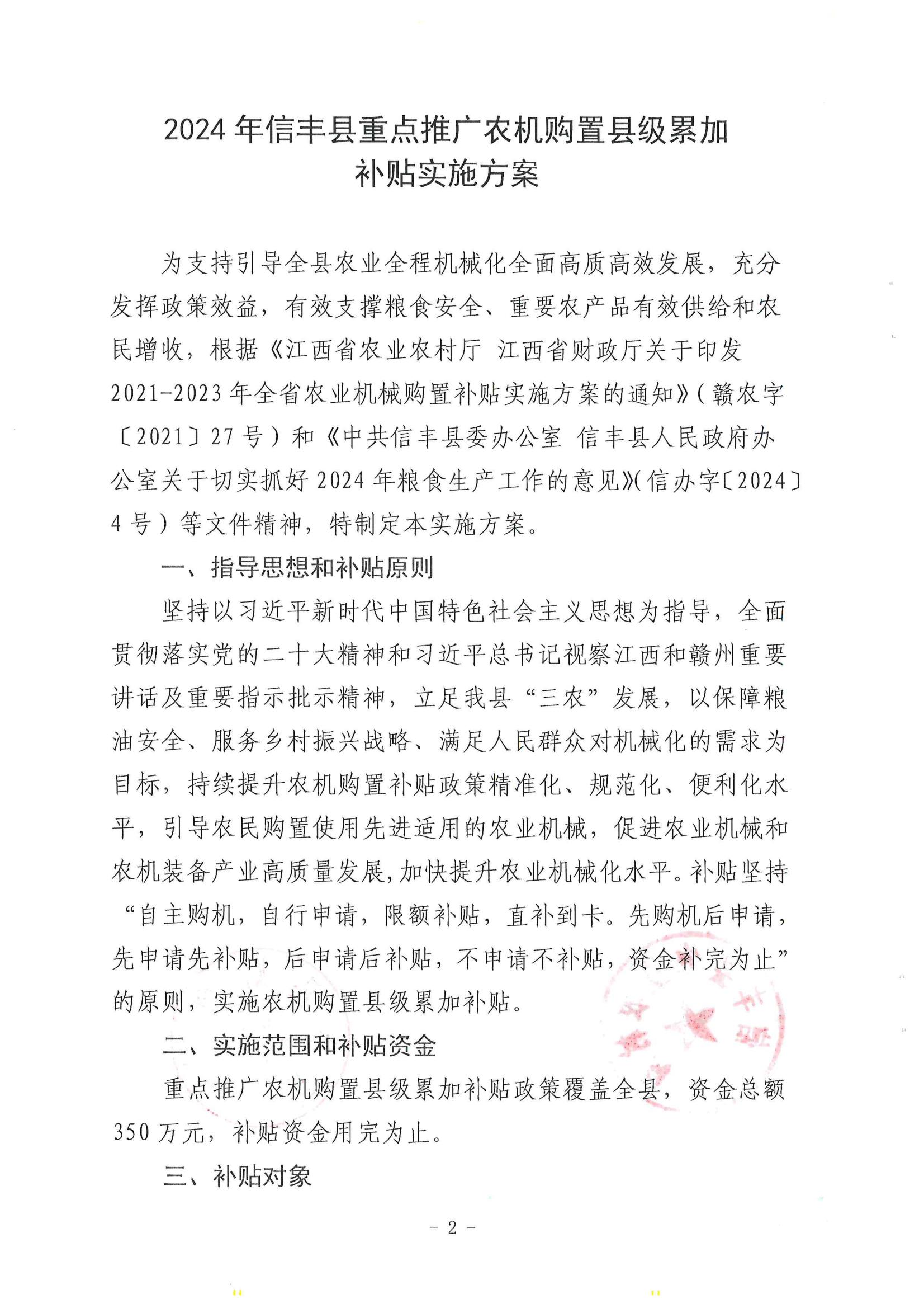 2024年信丰县重点推广农机购置县级累加补贴实施方案