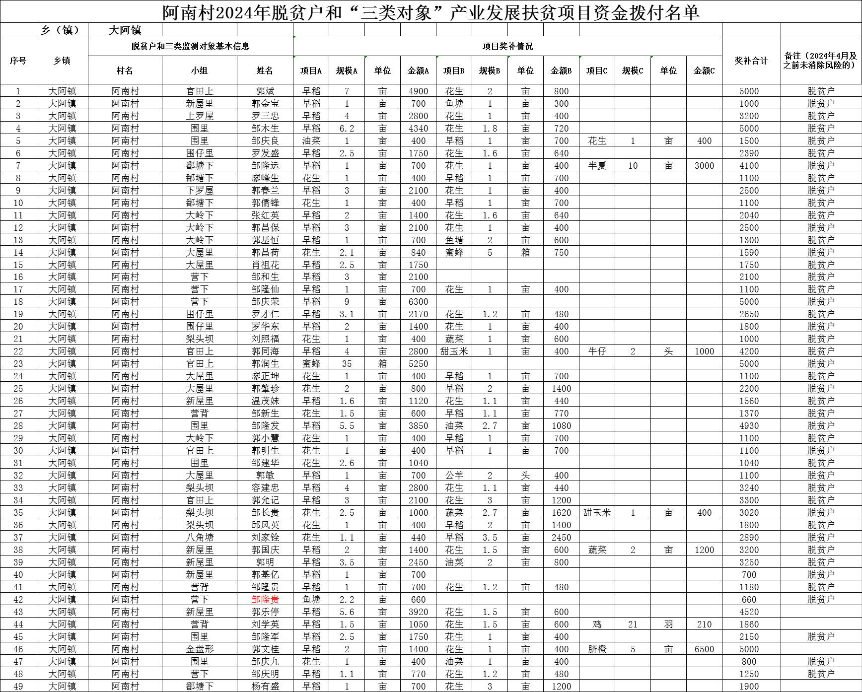 阿南村2024年脱贫户和“三类对象”产业发展扶贫项目资金拨付名单