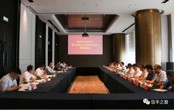 5月26日,国家开发银行江西省分行行长徐海涛一行到信丰考察调研,县委书记袁炎参加调研座谈会。