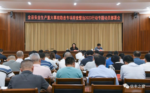 5月30日,全县组织召开安全生产重大事故隐患专项排查整治2023行动工作推进会,深入贯彻习近平总书记关于安全生产重要指示批示精神,认真落实中央和省市部署要求,分析全县安全生产形势,部署当前和下一阶段重点工作,全面筑牢安全稳定防线,为信丰经济发展营造安全稳定环境。县委副书记、县长张琳出席会议并讲话。县领导李绍武主持会议。