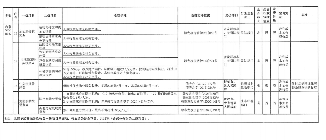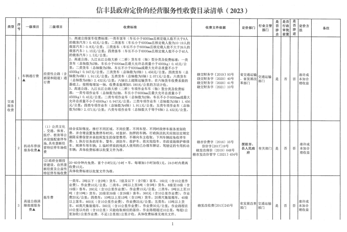 附件:信丰县政府定价的经营服务性收费目录清单(2023版)