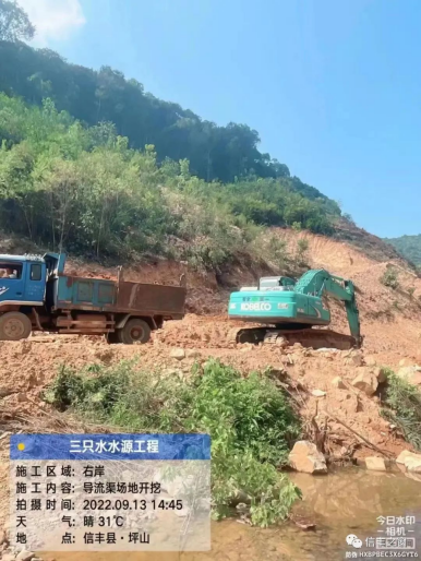 信丰县三只水水源工程项目总投资17932.19万元,坝址位于我县古陂镇大屋村三只水小组,距信丰县城约45km,距下游龙井水库坝址约5.5km,水库总库容633万m³,兴利库容451万m³,是一座以供水为主的年调节小(1)型水库。水库为龙井水库的补充水源,共同承担信丰县二水厂及太平水厂的水源供水任务。工程主要建设内容有新建 C15 埋石砼重力大坝、取水建筑物、上坝公路及其他管理设施。项目已于2022年7月15日开工,计划2024年8月31日竣工。