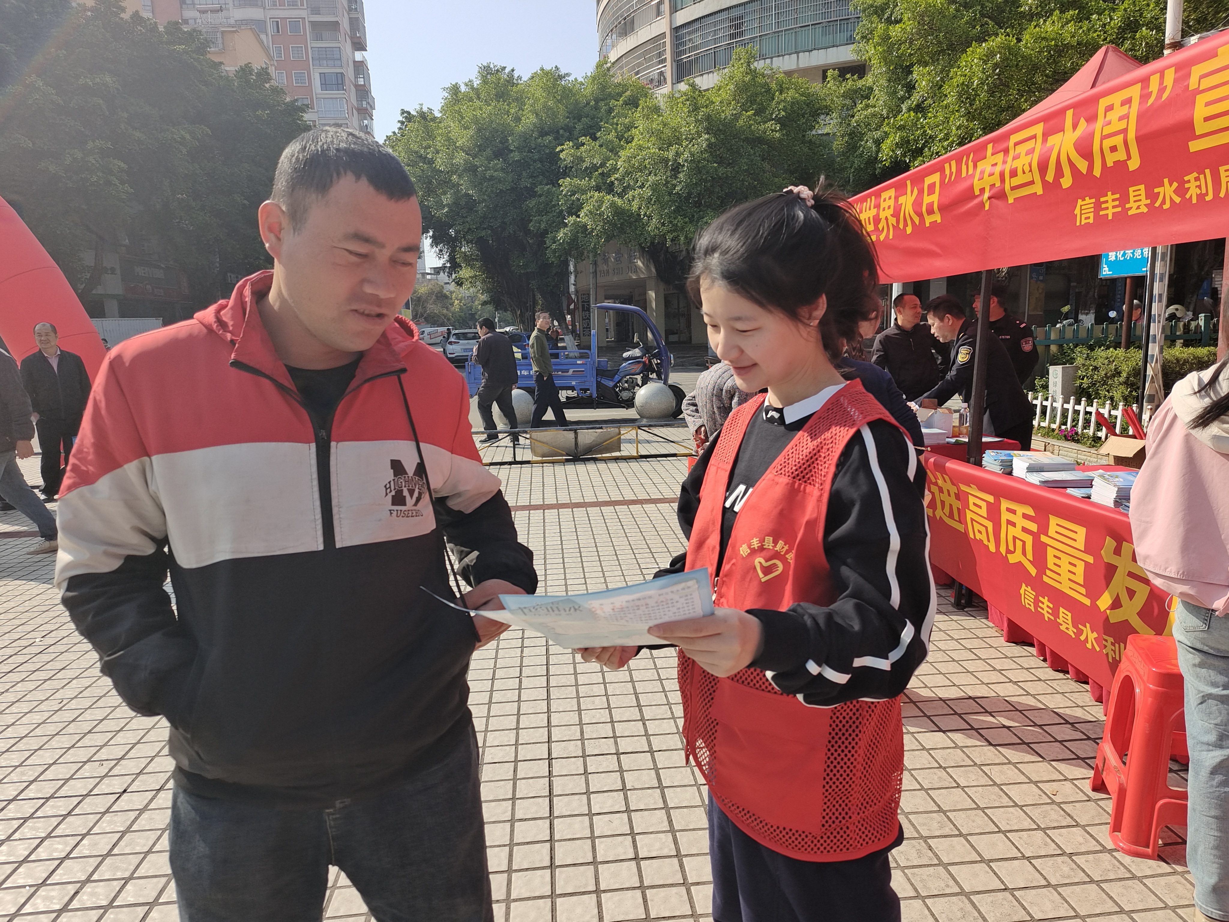 3月22日,信丰县财政局组织志愿者参加节水宣传活动,活动过程中,志愿者们向群众发放倡议书、宣传手册,热情向群众讲解节水环保知识,宣传《公民节约用水行为规范》和节约用水小常识,倡导爱水、节水、护水,让节水护水深入人心。
