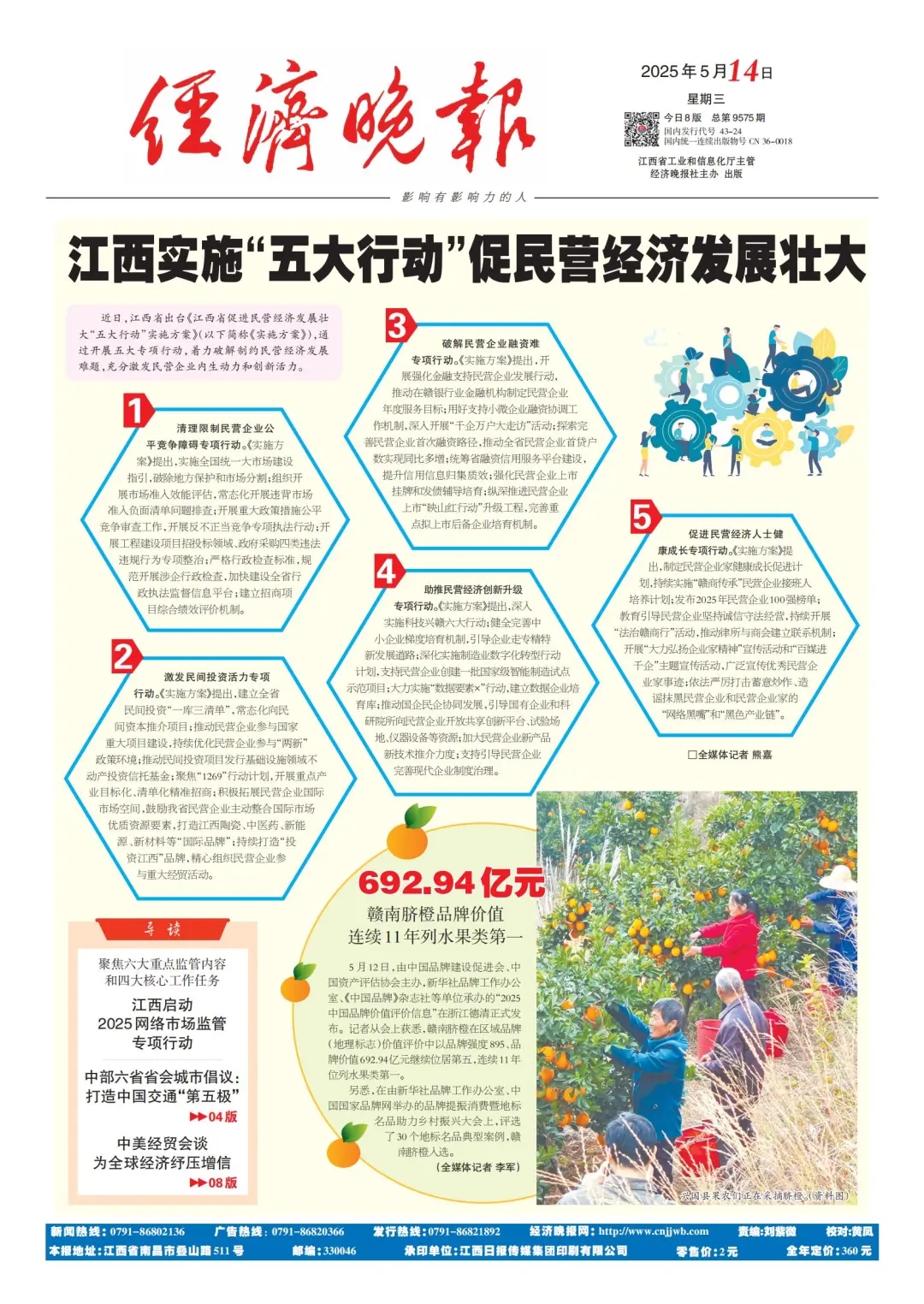 近日,江西省出台《江西省促进民营经济发展壮大“五大行动”实施方案》(以下简称《实施方案》),通过开展五大专项行动,着力破解制约民营经济发展难题,充分激发民营企业内生动力和创新活力。