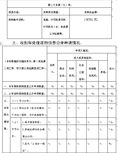据统计,2020年1月1日至2020年12月31日,我局公布政府信息总计722条,其中微信公众号文章72篇、网上政府信息公开专栏公开主动公开政务信息640条,政府信息公开任务完成比例为182.86%(政务动态626条,政策文件更新10篇,规划计划4条)。政府公报公开0条,维持不变;按时办结县政协十四届五次会议第25号、27号、48号、52号提案;本年度无申请公开政府信息,未发生收费情况;本年度未发生针对本部门有关政府信息公开事务的行政复议案、行政诉讼案和有关的申诉案。