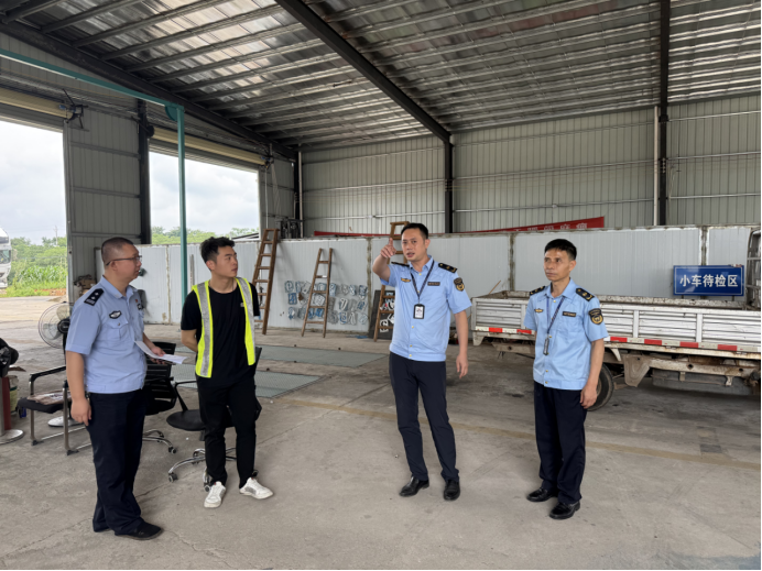 赣州市信丰生态环境局执法一中队大气股会同交警、市场监督管理局对信丰县车辆检测站进行联合执法检查