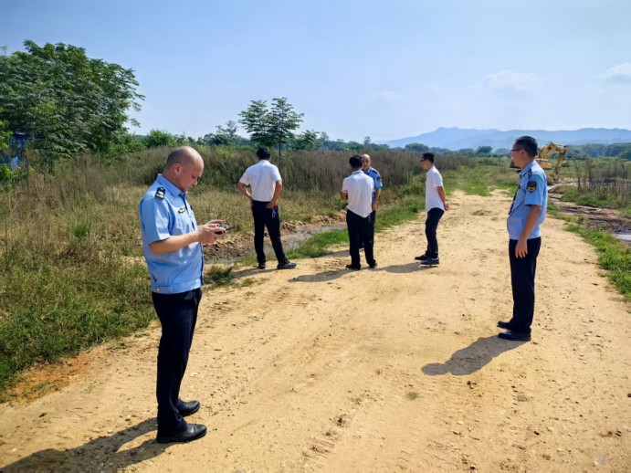 赣州市信丰生态环境局执法二中队联合技术服务站会同大阿镇人民政府调处投诉。