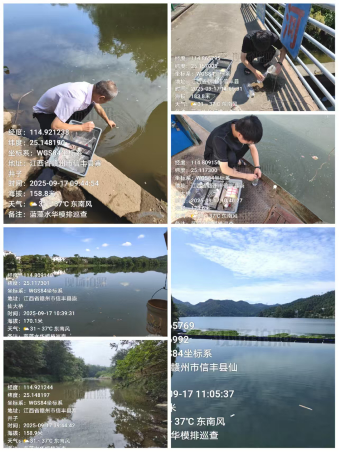 赣州市信丰生态环境局水办在桃江流域开展蓝藻水华摸排巡查