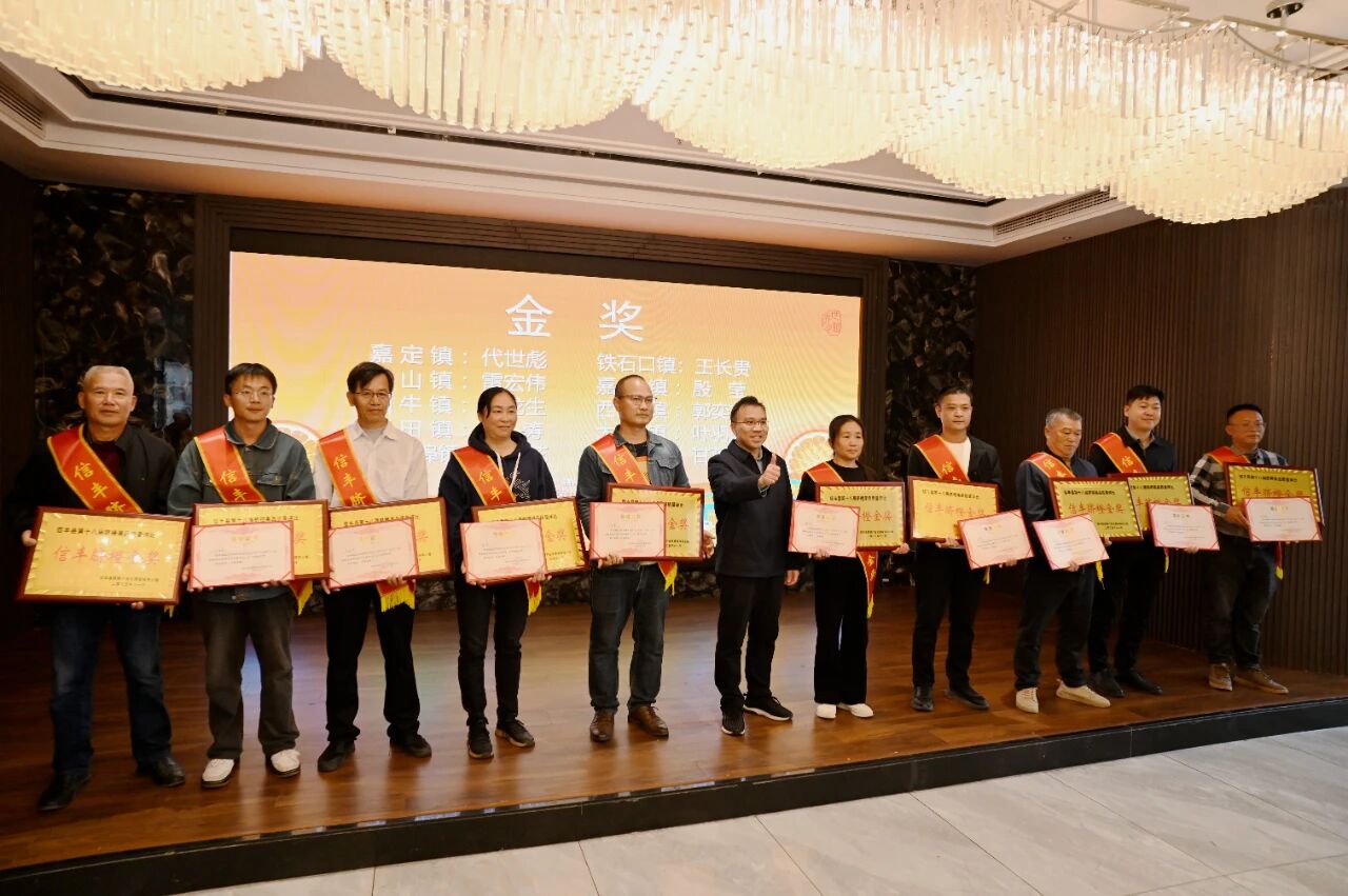 县人大常委会主任何文庆,县领导陈明慧分别为“一王十金十银”获奖者颁发奖牌。