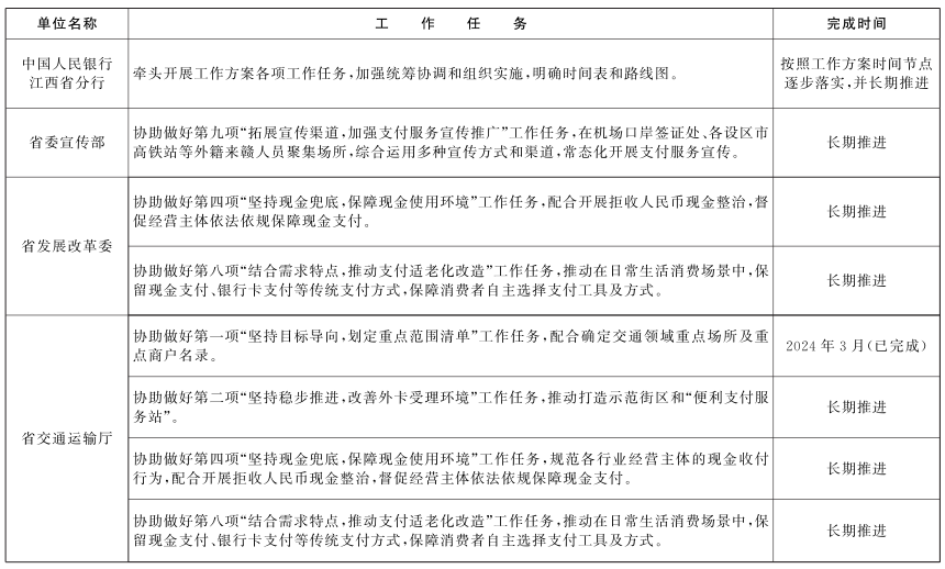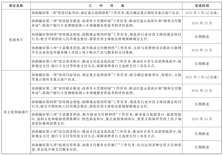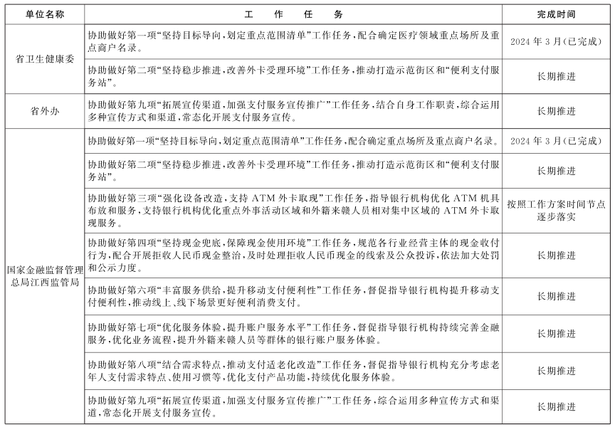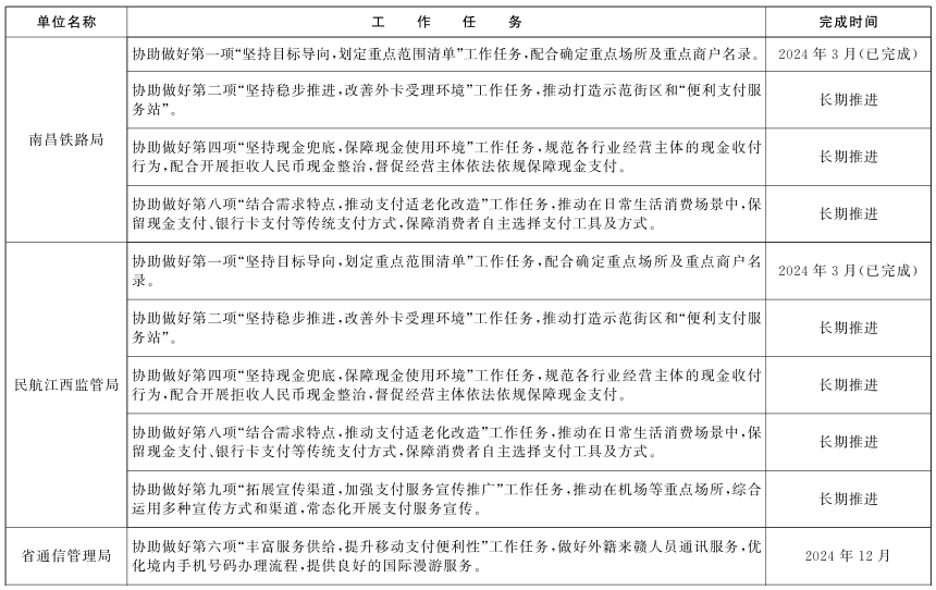 江西省优化支付服务提升支付便利性工作任务表