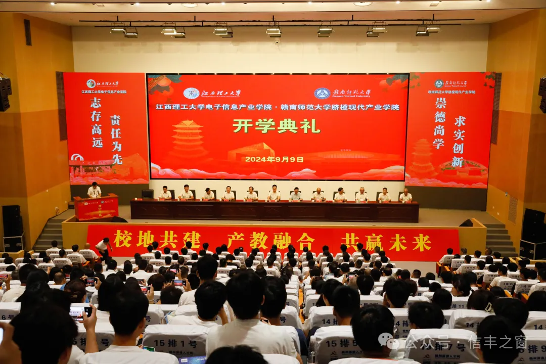 乘着党的二十届三中全会的东风,在信丰建县1342年、在全国第40个教师节来临之际,9月9日,江西理工大学电子信息产业学院、赣南师范大学脐橙现代产业学院开学典礼在信丰举行。这是我县深入学习贯彻习近平新时代中国特色社会主义思想和党的二十大精神,推进产教融合、校地合作的重要成果,也标志着信丰这座千年古邑历史性拥有了自己的两所大学,是信丰发展史上具有里程碑意义的一件大事、喜事、盛事。