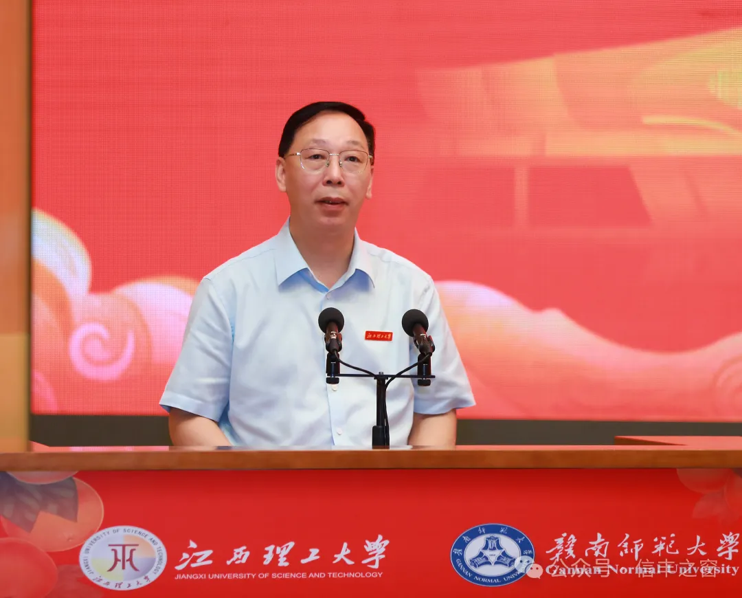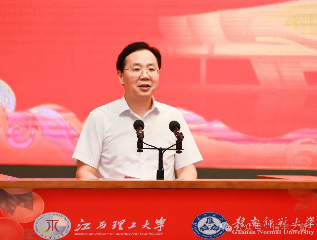 市委常委、市政府常务副市长胡剑飞,江西理工大学党委书记杨斌,赣南师范大学党委副书记、校长陈义旺分别讲话。赣南师范大学党委书记朱小理,江西理工大学党委常委、副校长黄志繁,市委组织部副部长、市委人才办主任王健洪,市工信局局长宋鹏,市科技局局长郭澜,市果业发展服务中心主任钟小春,市委教育工作领导小组秘书组常务副组长谢济明,“赣南脐橙第一人”袁守根参加。县委书记袁炎致辞。