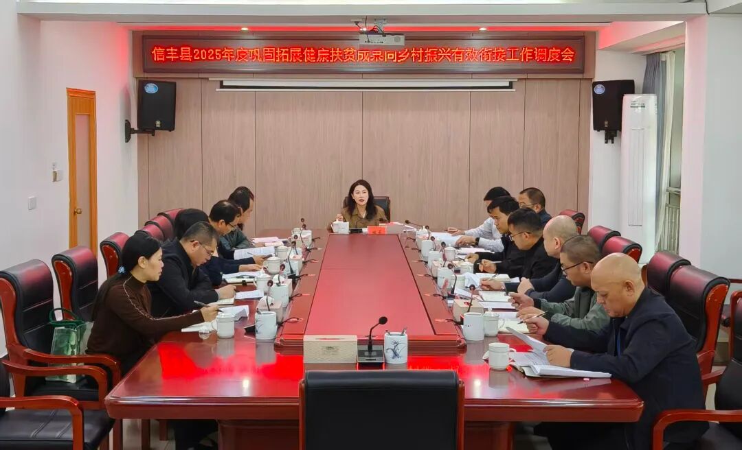 11月12日,县政府副县长林蓉主持召开信丰县2025年度巩固拓展健康扶贫成果同乡村振兴有效衔接工作调度会。县卫健委、县农业农村局、市医保局信丰分局、县财政局、县民政局、县残联等单位以及县直医疗机构相关负责同志参加会议。