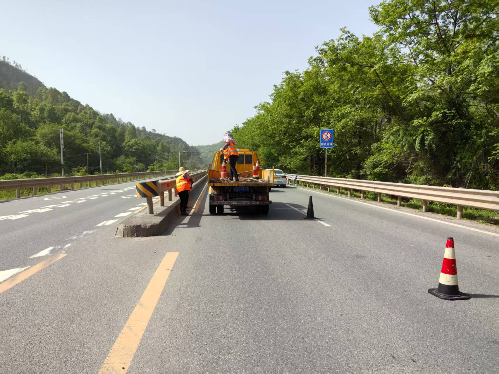 2025年4月14日,信丰公路分中心组织工作人员清扫公路路面。